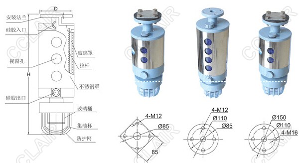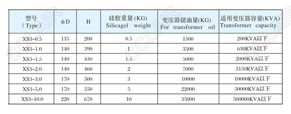 吸濕器按硅膠可分為白色硅膠吸濕器和變色硅膠吸濕器;按功能可分為普通(或單吸)吸濕器和雙呼吸吸濕器。 吸濕器硅膠顏色為:白色、藍(lán)色兩種型號: 0.1kg 、 0.2kg 、 0.5kg 、 1kg 、 2kg 、 3kg 、 5kg 、8kg、 10kg 技術(shù)參數(shù):