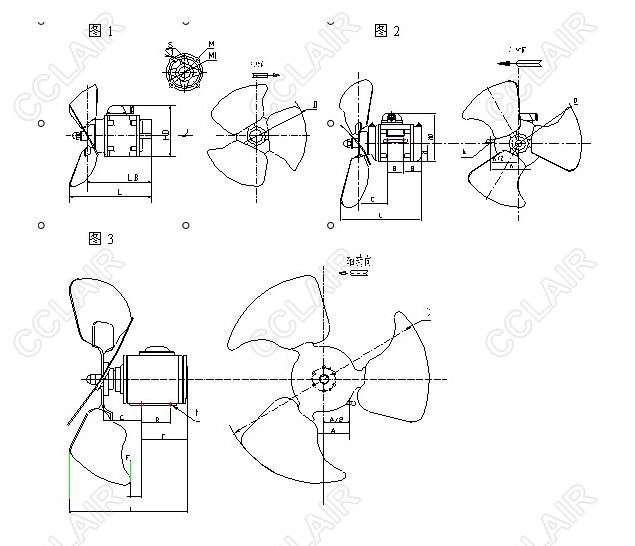 前吹(空氣由電動(dòng)機(jī)流向葉輪) |