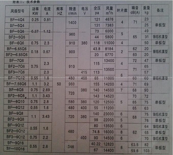 5.3.3停機(jī)時(shí)間較長,需要重新投入運(yùn)行時(shí),應(yīng)確保氣流通道和風(fēng)筒內(nèi)無異物,然后撥動(dòng)葉輪進(jìn)行檢查,待供電線路等一切正常后即可投入運(yùn)行。