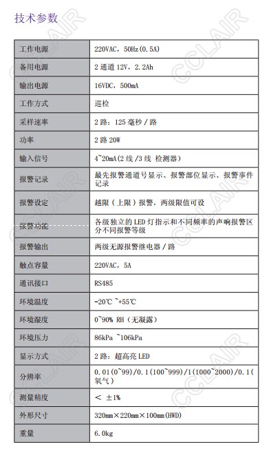 兩級報警值設(shè)定,不同聲光信號指示不同報警級別