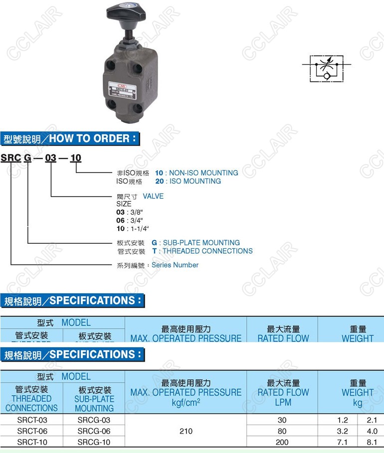 SRCG-03-10,SRCG-03-20,SRCT-06-20,SRCT-10-10,SRCT-10-20,單向節(jié)流閥CML