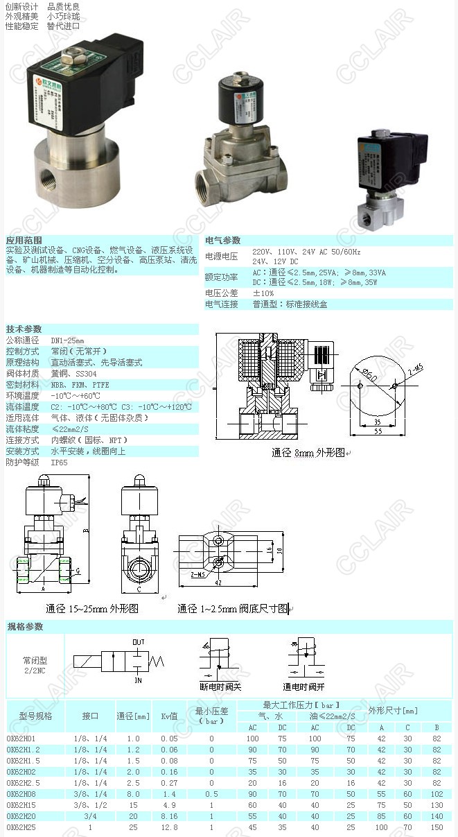 OK62H01,OK62H1.2,OK62H1.5,OK62H02,OK62H2.5,OK62H15,OK62H20,OK62H25,OK62H,精巧高壓電磁閥 |