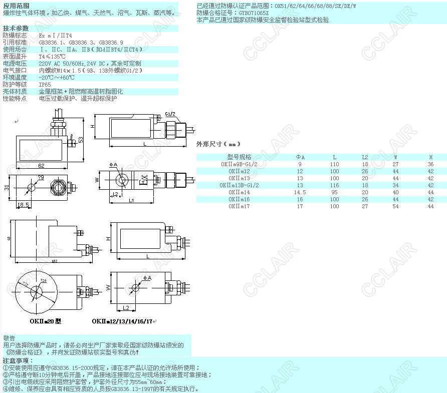 OKⅡm9B-G1/2,OKⅡm12,OKⅡm13,OKⅡm13B-G1/2,OKⅡm14,OKⅡm16,OKⅡm17,防爆電磁線圈