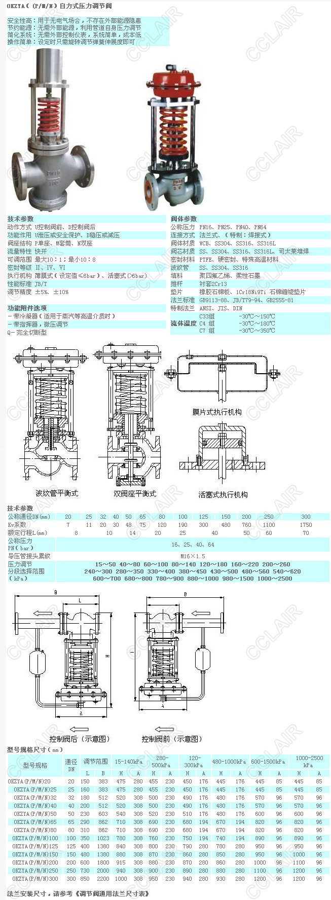 OKZYA(P/M/N)20,OKZYA(P/M/N)32,OKZYA(P/M/N)300,OKZYA(P/M/N),自力式壓力調(diào)節(jié)閥