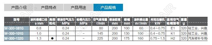 W-300-081G,W-300-101G,W-300-132G,W-300中心杯噴槍