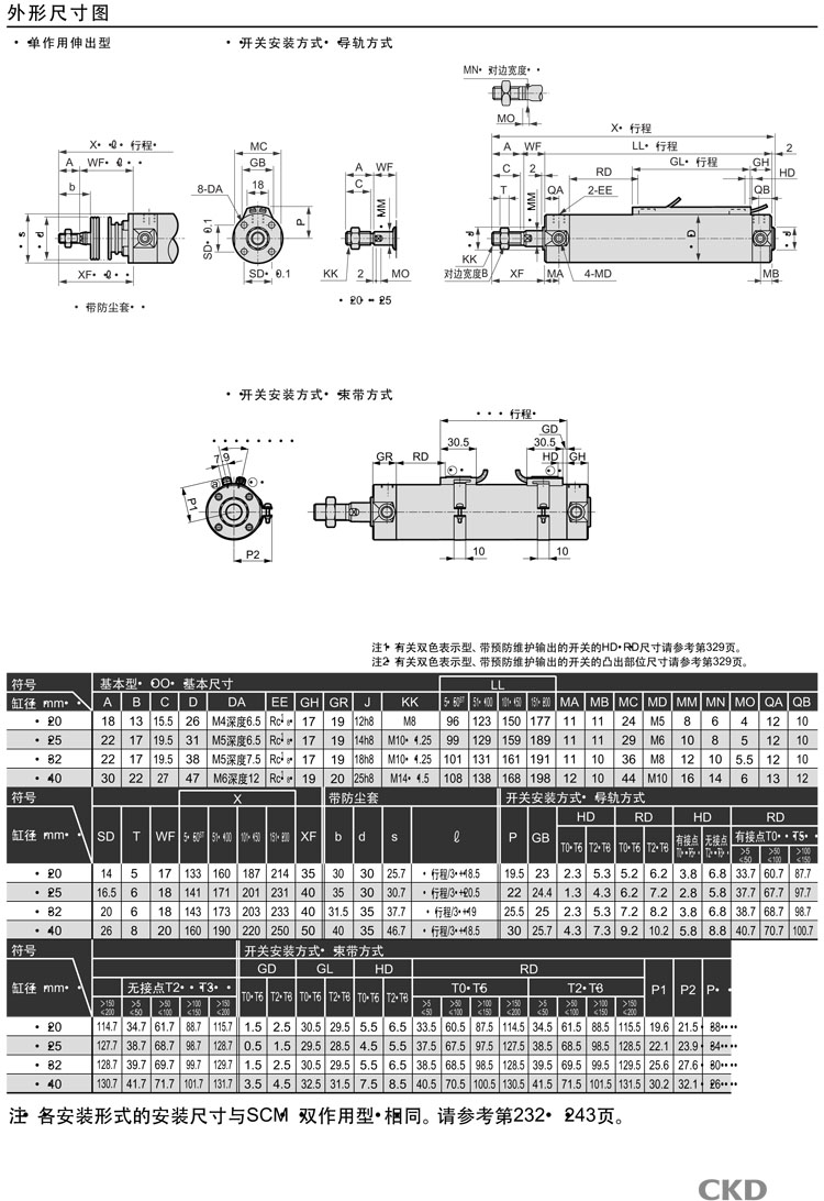 SCM-X-00,SCM-X-LB,SCM-X-FA,SCM-X-FB,SCM-X-CA,SCM-X-TA,SCM-X-TB,CKD圓形緊湊氣缸