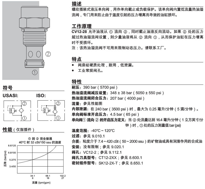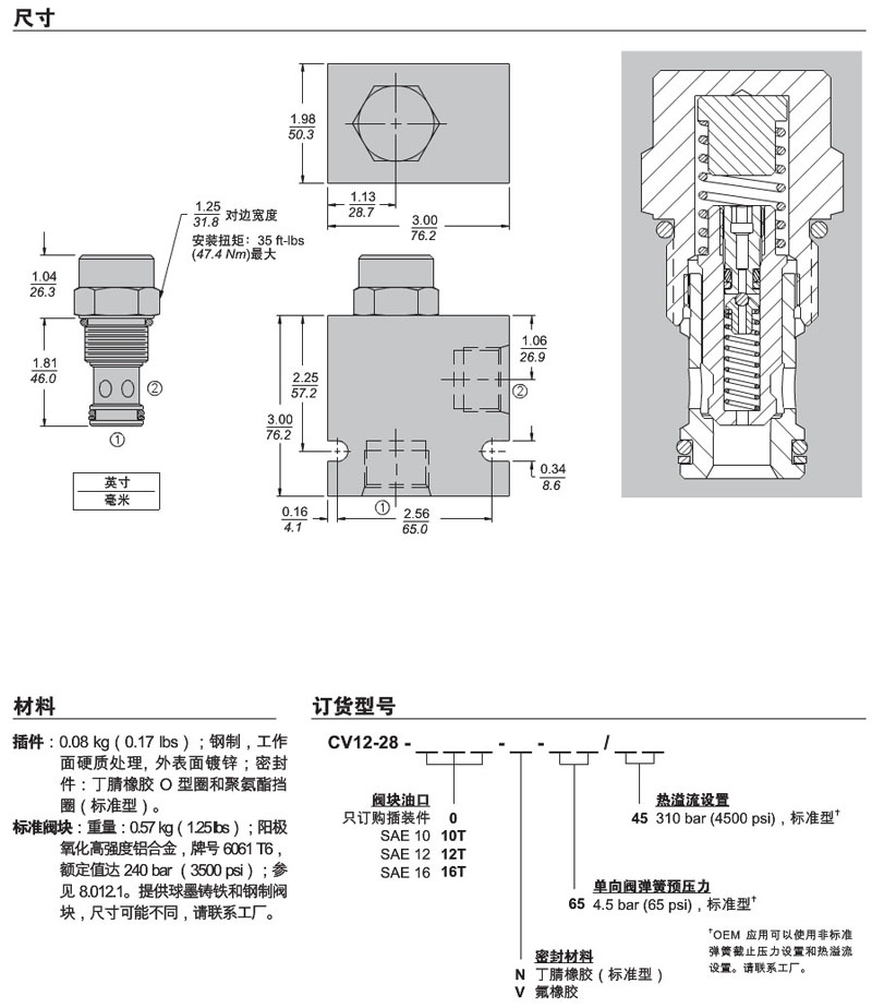CV12-28-0-N-65/45,CV12-28-10T-N-65/45,CV12-28-12T-V-65/45,熱溢流單向閥