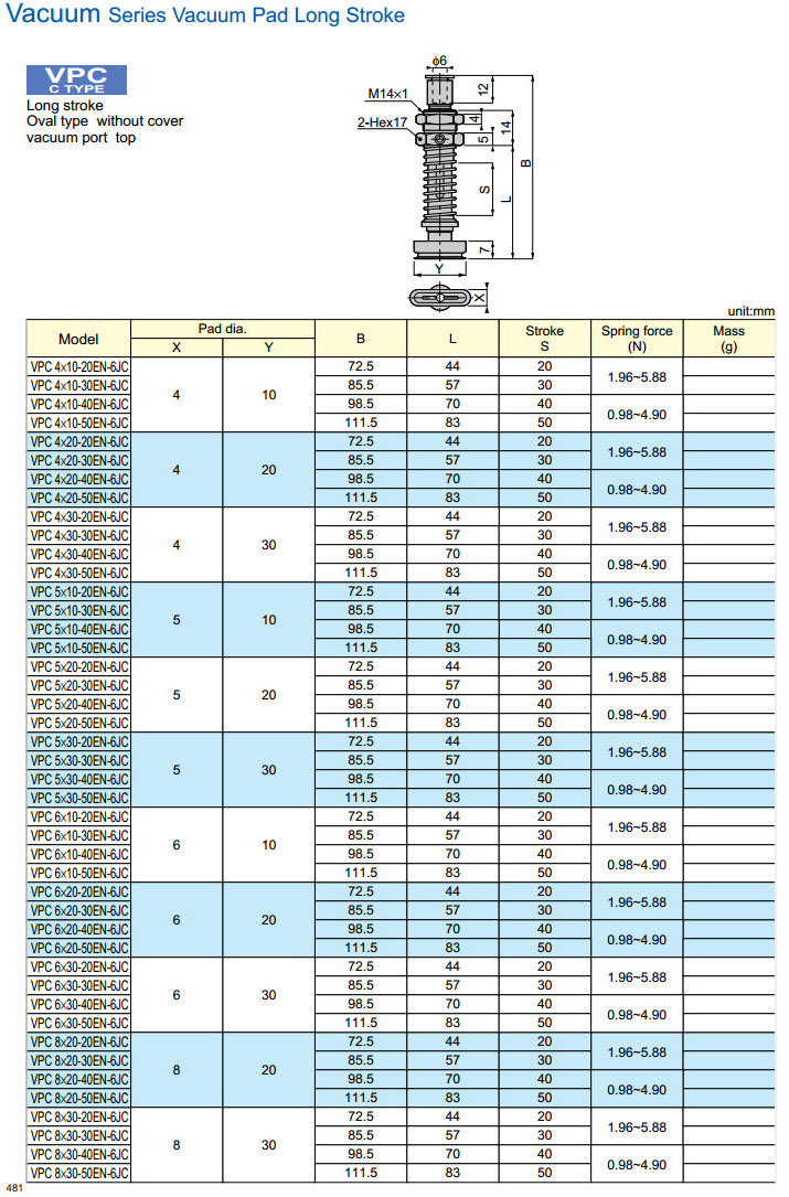 VPC4×10-20EN-6JC,VPC5×10-20EN-6JC,VPC6×10-20EN-6JC,VPC8×20-50EN-6JC,PISCO真空吸盤 |