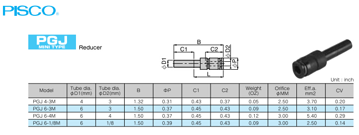 PGJ4-3M,PGJ6-3M,PGJ6-4M,PGJ6-1/8M,PISCO快速接頭