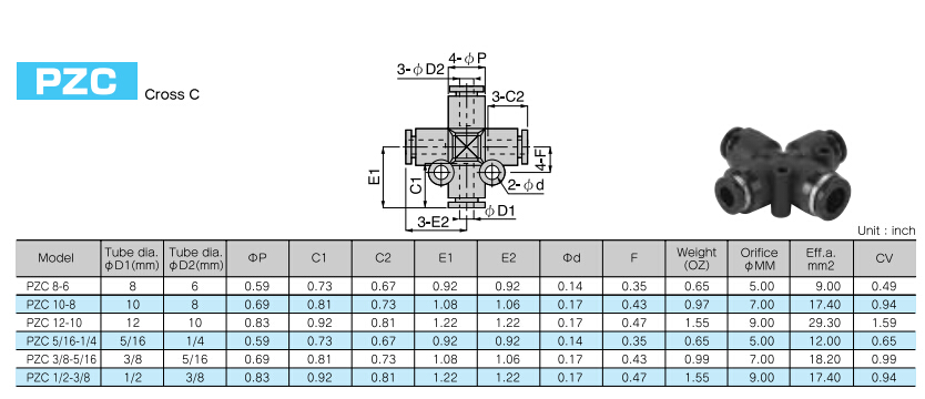 PZC8-6,PZC10-8,PZC12-10,PZC5/16-1/4,PZC3/8-5/16,PZC1/2-3/8