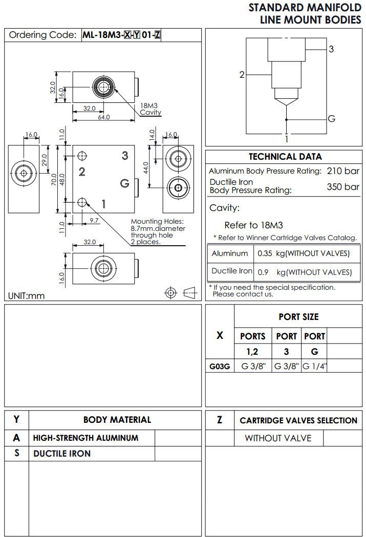 ML-18M3-A01,ML-18M3-S01,winner標準配管式油路板
