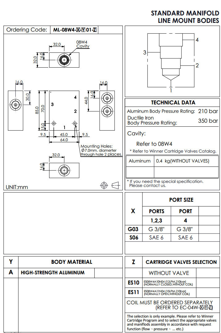ML-08W4-G03-A01-ES10,ML-08W4-S06-A01-ES10,ML-08W4-G03-A01-ES11,ML-08W4-S06-A01-ES11,winner標(biāo)準(zhǔn)配管式油路板