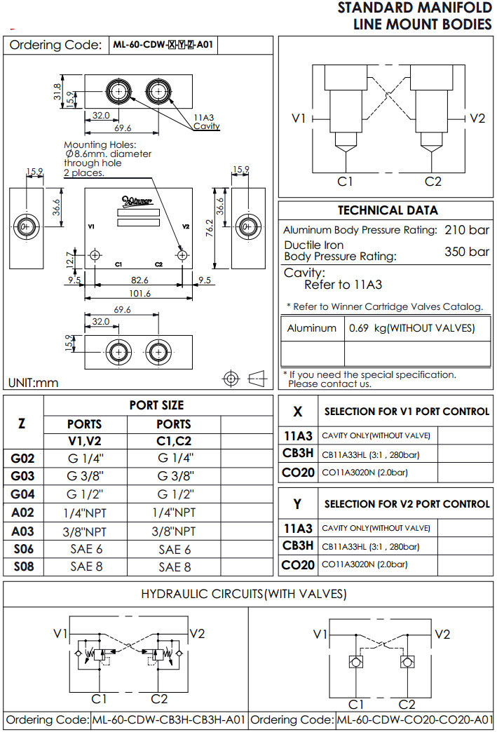 ML-60-CDW-11A3-11A3-G02-A01,ML-60-CDW-CB3H-CB3H-G02-A01,ML-60-CDW-CO20-CO20-G02-A01,winner標(biāo)準(zhǔn)配管式油路板