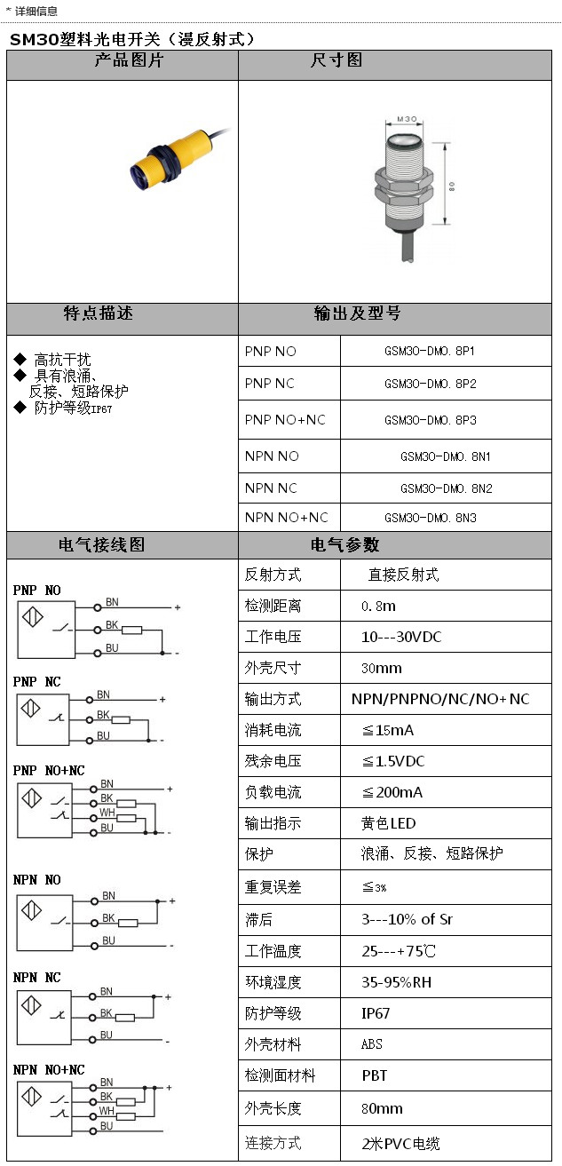 GSM30-DM0.8P1,GSM30-DM0.8P2,GSM30-DM0.8N1,GSM30-DM0.8N2,GSM30-DM0.8N3,SM30光電(漫反射)