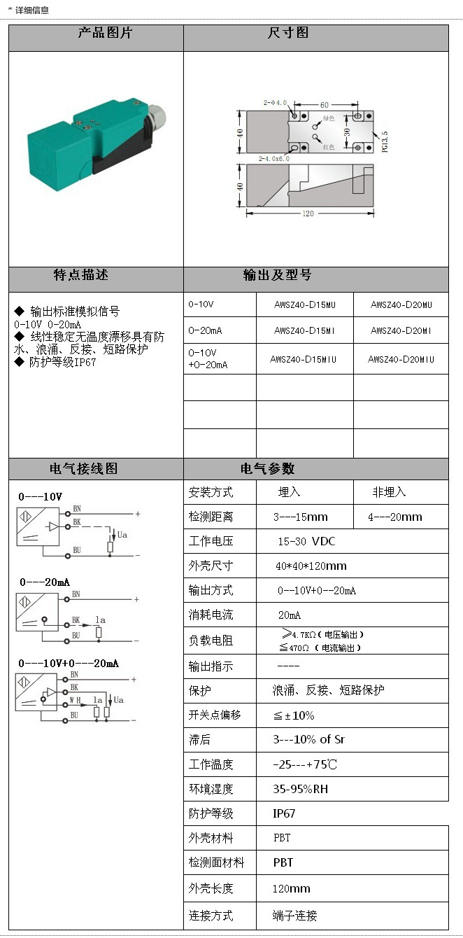 AWSZ40-D15MU,AWSZ40-D20MU,AWSZ40-D15MI,AWSZ40-D15MIU,1AWSZ40-D20MIU,SZ40模擬量傳感器