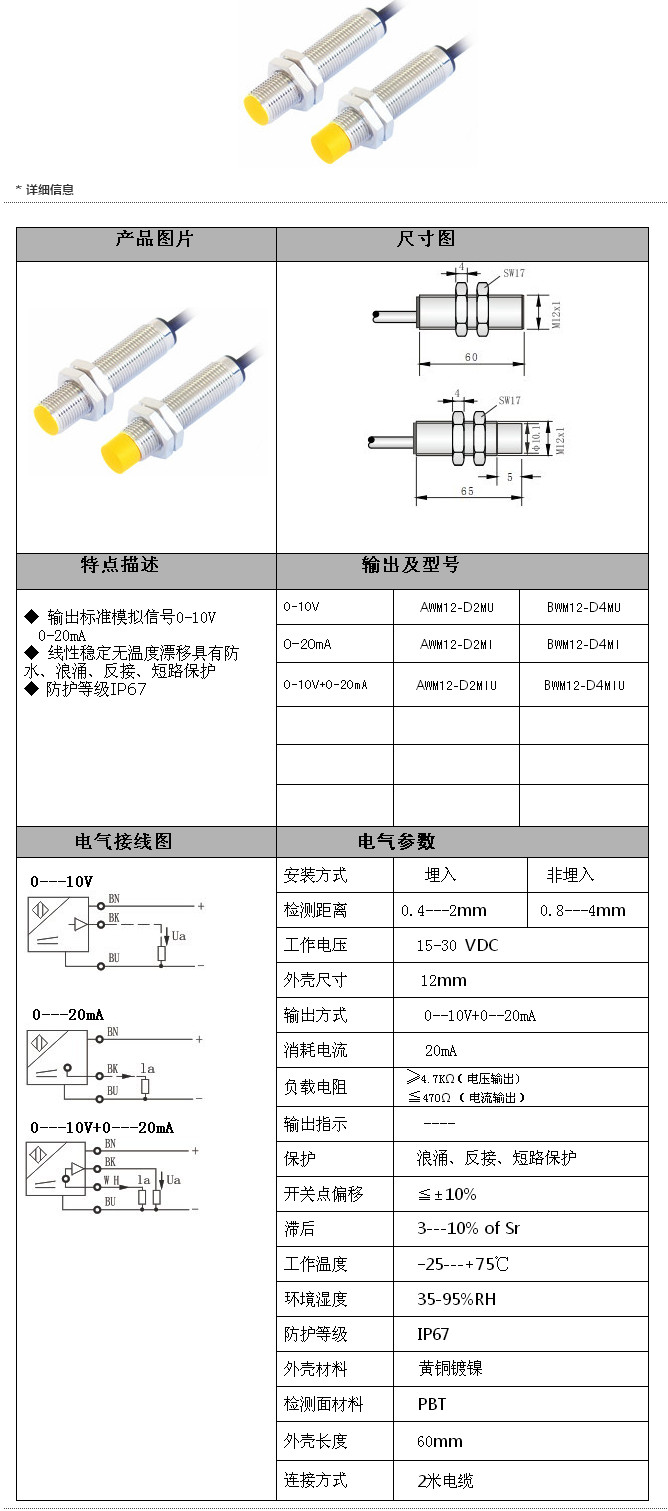 AWM12-D2MU,BWM12-D4MU,AWM12-D2MI,BWM12-D4MI,AWM12-D2MIU,BWM12-D4MIU,M12模擬量傳感器