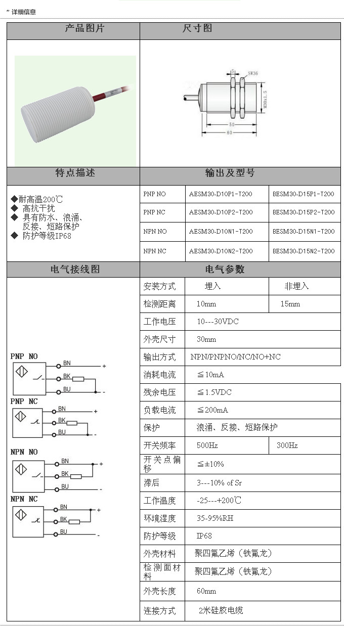 AESM30-D10P1-T200,BESM30-D15P1-T200,AESM30-D10P2-T200,BESM30-D15P2-T200, AESM30-D10N1-T200,BESM30-D15N1-T200,AESM30-D10N2-T200,BESM30-D15N2-T200,