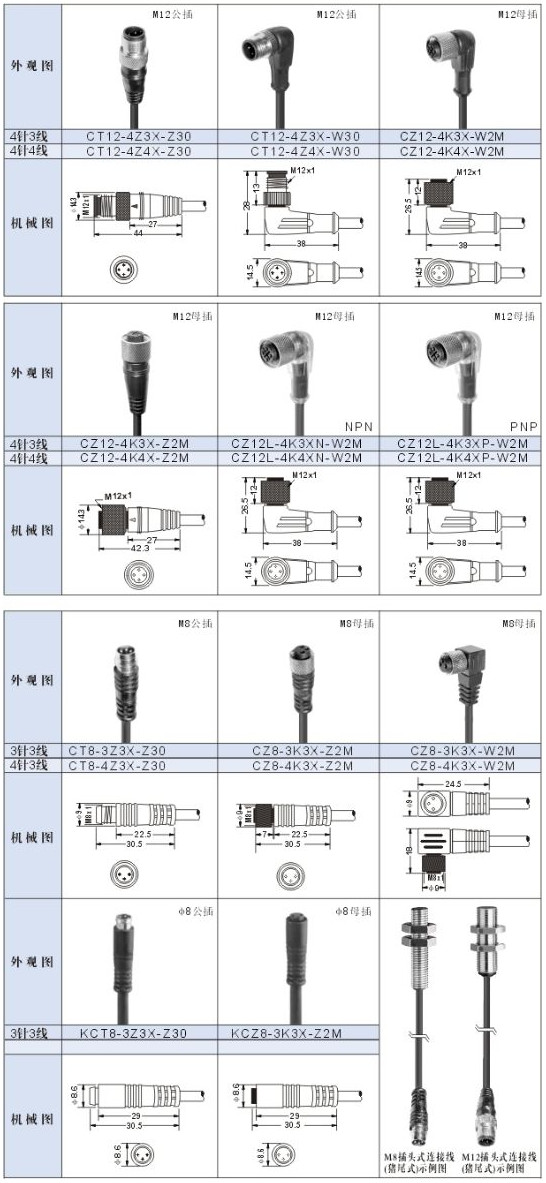 插頭式連接線 ,CT12-4Z3X-Z30,CT12-4Z3X-W30,CT12-4K3X-W2M,