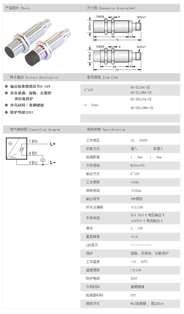 電感式線性傳感器 HG-XL18A-ZK, HG-XL18MA-ZK,HG-XDL18A-ZK,HG-XDL18MA-ZK,
