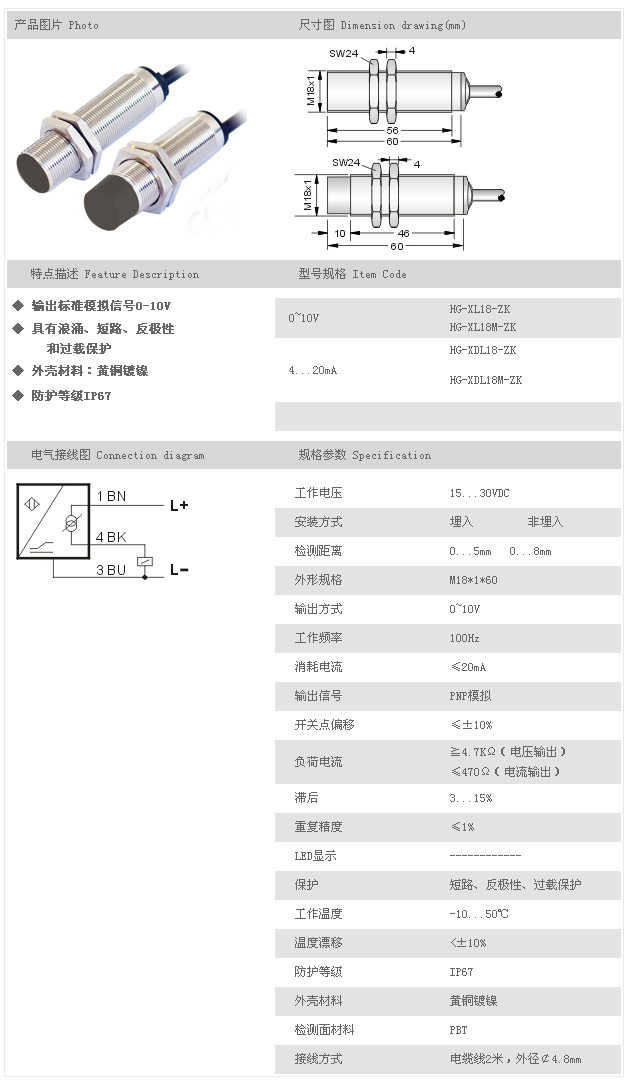 電感式線性傳感器 HG-XL18-ZK,HG-XL18M-ZK,HG-XDL18-ZK,HG-XDL18M-ZK,