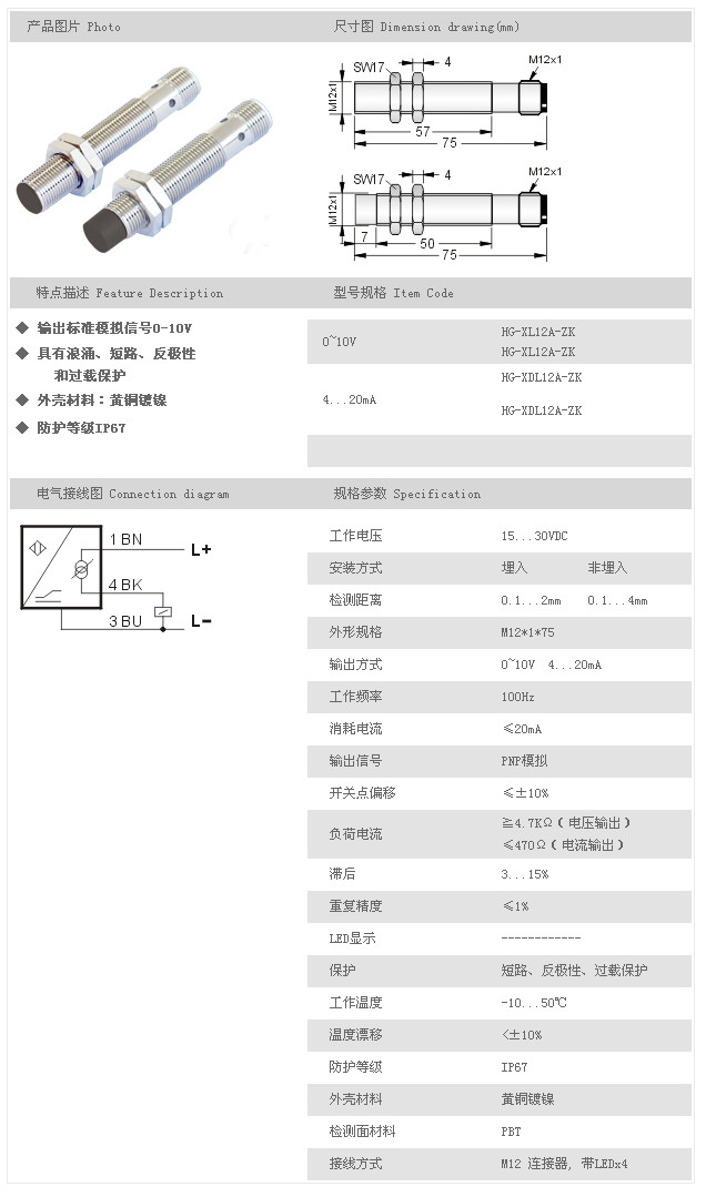 電感式線性傳感器 HG-XL12A-ZK,HG-XL12A-ZK,HG-XDL12A-ZK,HG-XDL12A-ZK,