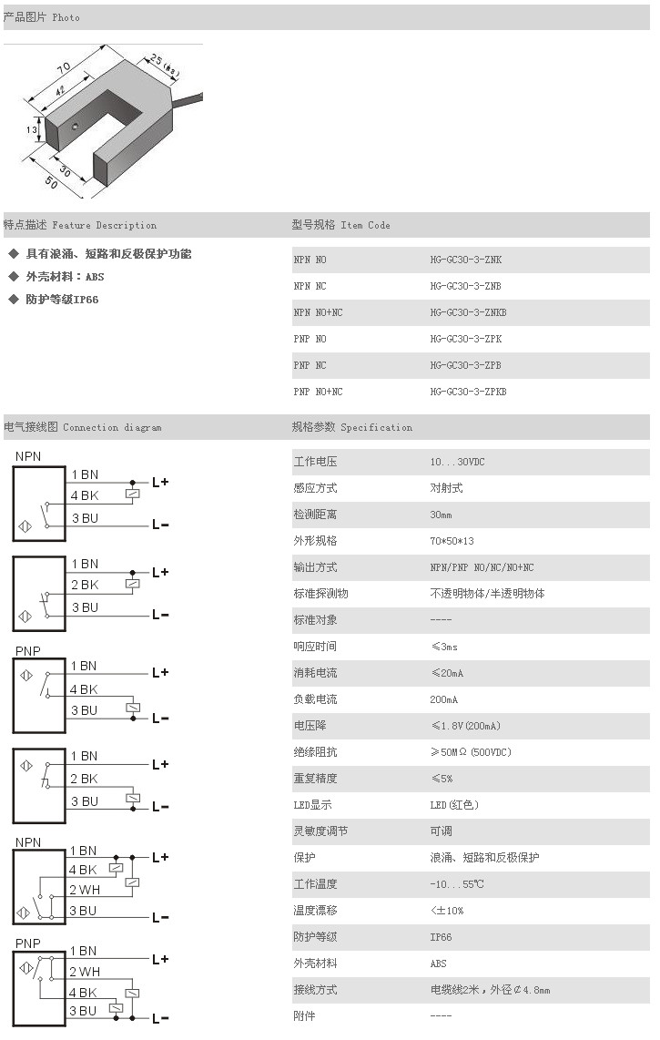 槽型光電開關(guān)/傳感器 HG-GC30-3-ZNK,HG-GC30-3-ZNB,HG-GC30-3-ZNKB,HG-GC30-3-ZPK,HG-GC30-3-ZPB,HG-GC30-3-ZPKB |