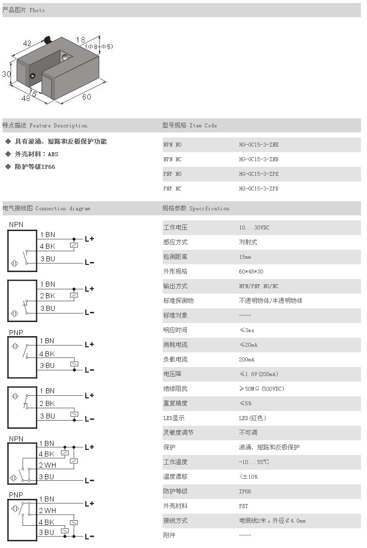 槽型光電開關(guān)/傳感器 HG-GC15-3-ZNK,HG-GC15-3-ZNB,HG-GC15-3-ZPK,HG-GC15-3-ZPB,