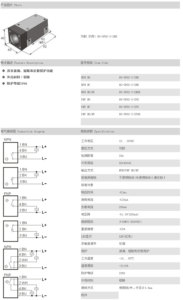 /傳感器 HG-GF92-3-ZNK,HG-GF92-3-ZNB,HG-GF92-3-ZNKB,HG-GF92-3-ZPK,HG-GF92-3-ZPB,HG-GF92-3-ZPKB,