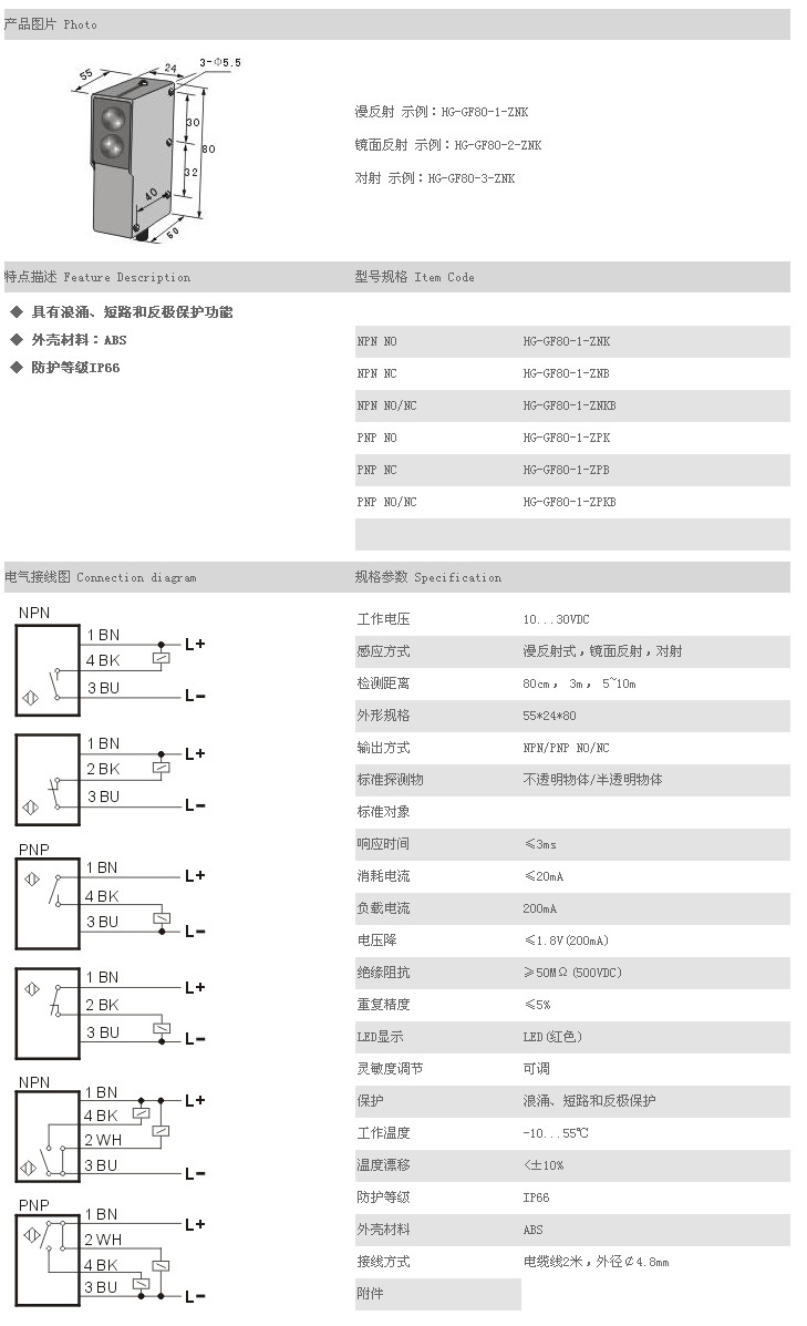 /傳感器 HG-GF80-1-ZNK,HG-GF80-1-ZNB,HG-GF80-1-ZNKB,HG-GF80-1-ZPK,HG-GF80-1-ZPB,HG-GF80-1-ZPKB