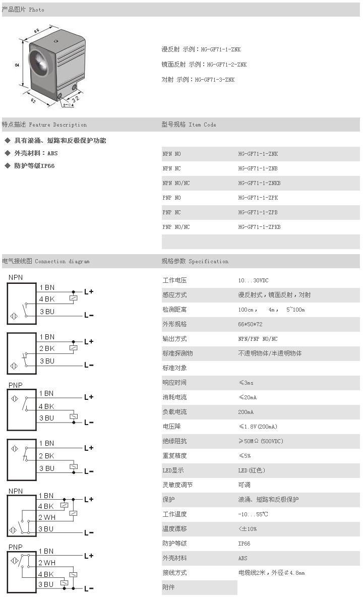 /傳感器 HG-GF71-1-ZNK,HG-GF71-1-ZNB,HG-GF71-1-ZNKB,HG-GF71-1-ZPK,HG-GF71-1-ZPB,HG-GF71-1-ZPKB,