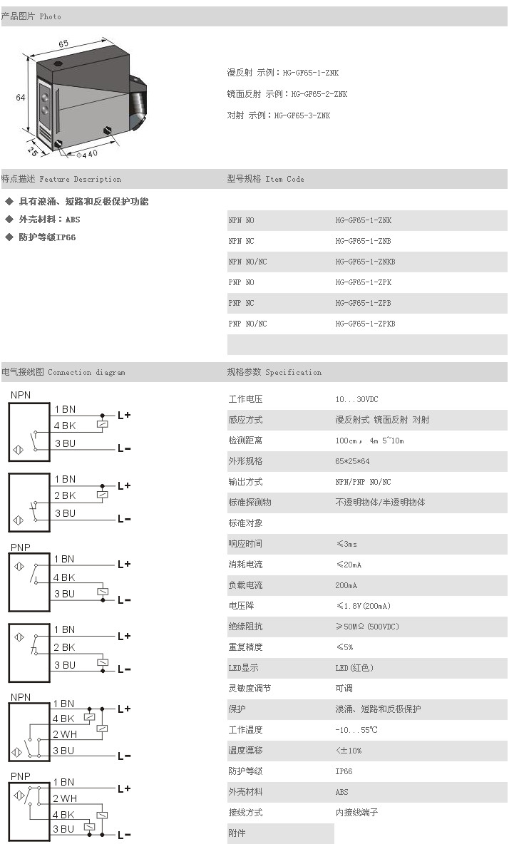 /傳感器 HG-GF65-1-ZNK,HG-GF65-1-ZNB,HG-GF65-1-ZNKB,HG-GF65-1-ZPK,HG-GF65-1-ZPB,HG-GF65-1-ZPKB,