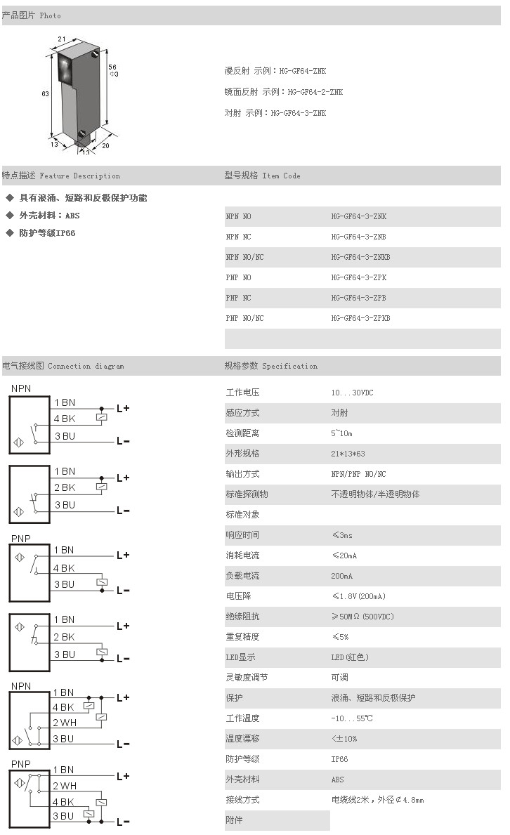 方型光電開關(guān)/傳感器 HG-GF64-3-ZNK,HG-GF64-3-ZNB,HG-GF64-3-ZNKB,HG-GF64-3-ZPK,HG-GF64-3-ZPB,HG-GF64-3-ZPKB |