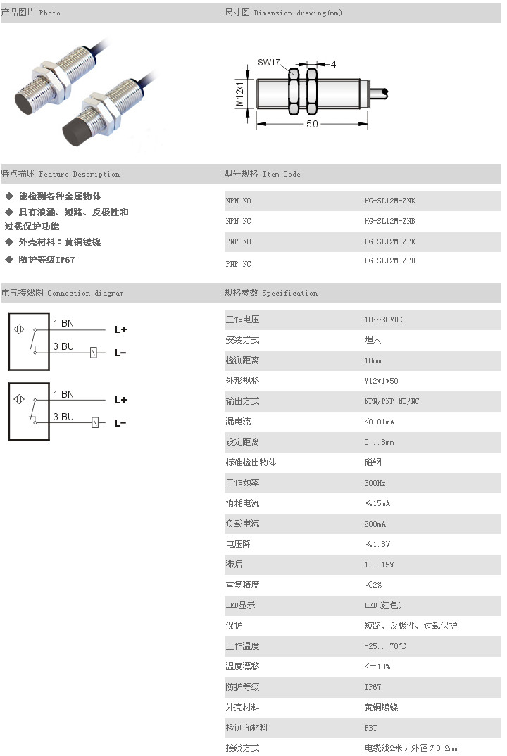 普通型磁性開關(guān) HG-SL12M-ZNK,HG-SL12M-ZNB,HG-SL12M-ZPK,HG-SL12M-ZPB,
