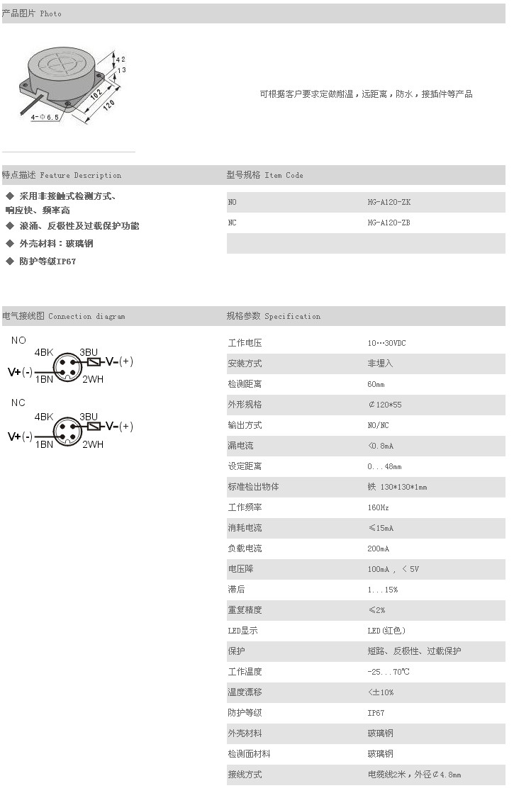 餅型接近傳感器 HG-A120-ZK,HG-A120-ZB,