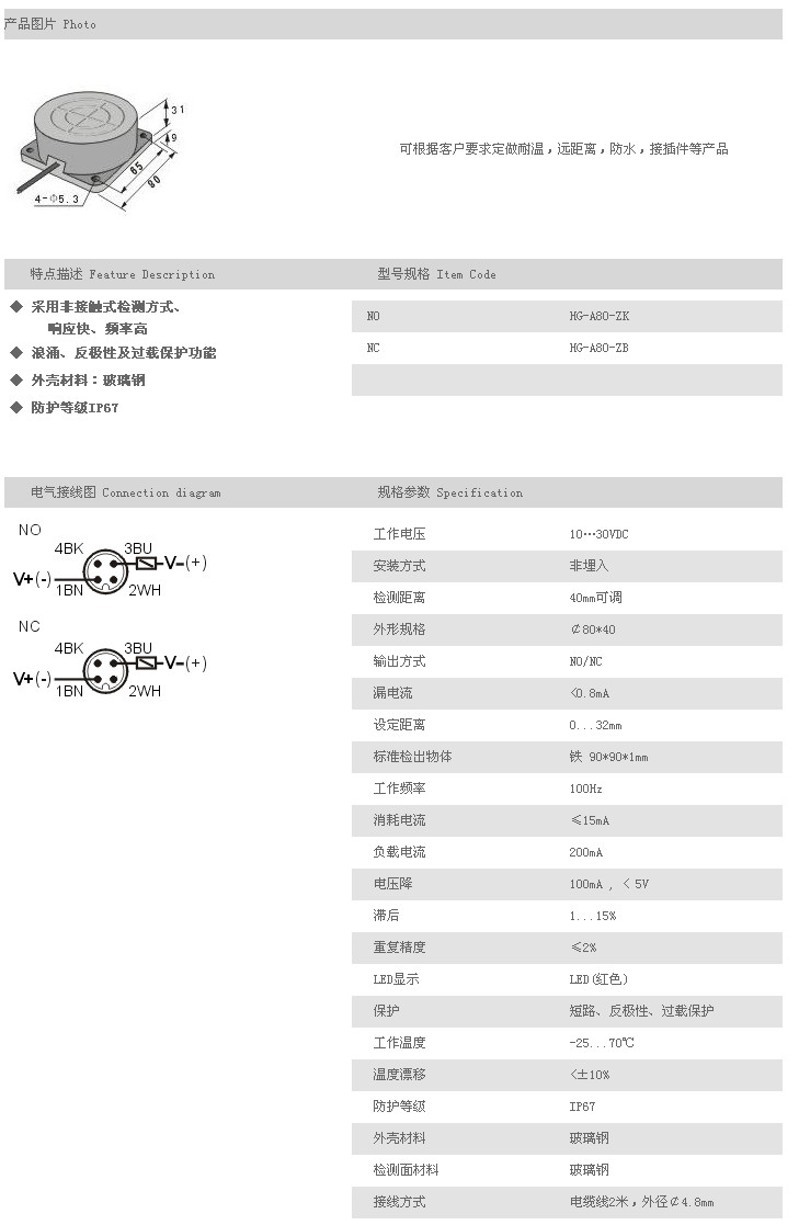 餅型接近傳感器 HG-A80-ZK,HG-A80-ZB,