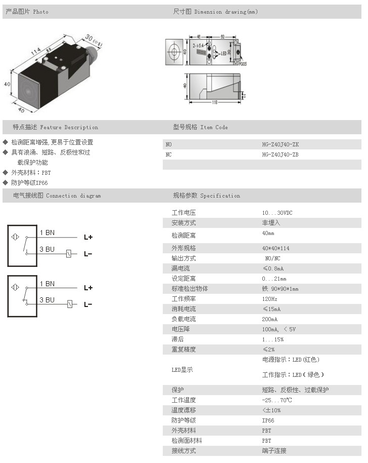 遠(yuǎn)距離型接近開(kāi)關(guān) HG-Z40J40-ZK,HG-Z40J40-ZB,