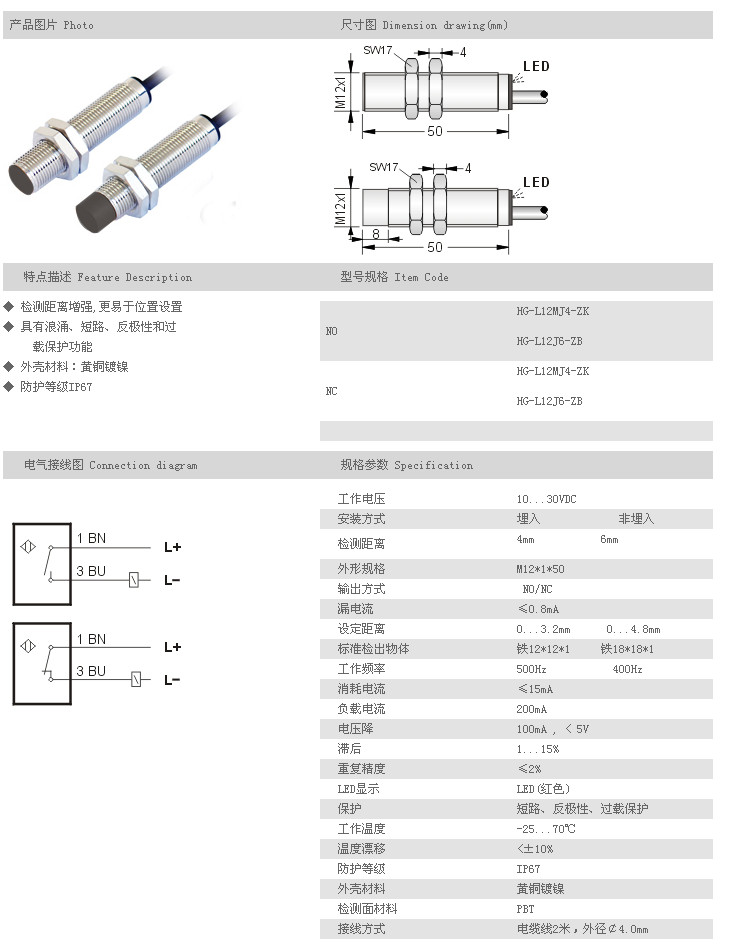 遠距離型接近開關(guān) HG-L12MJ4-ZK,HG-L12J6-ZB,HG-L12MJ4-ZK,HG-L12J6-ZB,