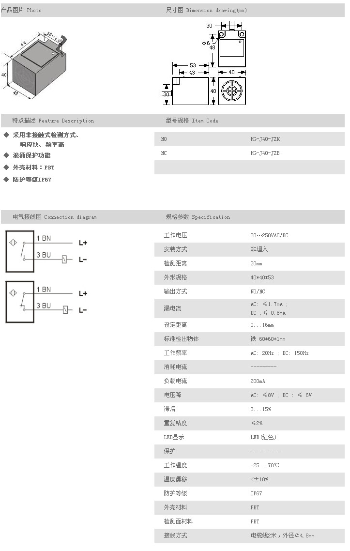 方型接近開關(guān) HG-J40-JZK,HG-J40-JZB,
