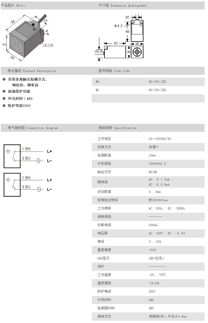 方型接近開關(guān) HG-J30-JZK,HG-J30-JZB,
