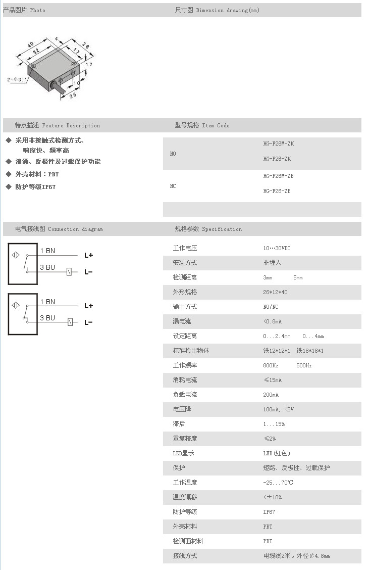 方型接近開關(guān) HG-F26M-ZK,HG-F26-ZK,HG-F26M-ZB,HG-F26-ZB,
