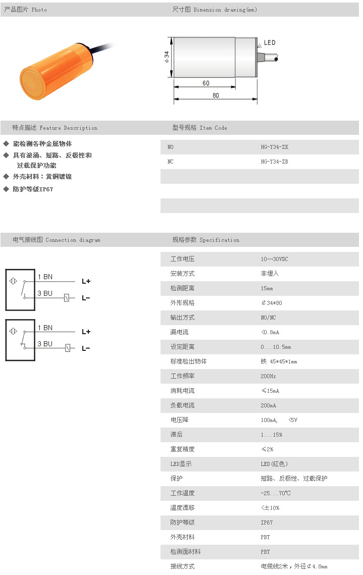 圓柱型接近開關(guān) HG-Y34-ZK,HG-Y34-ZB,