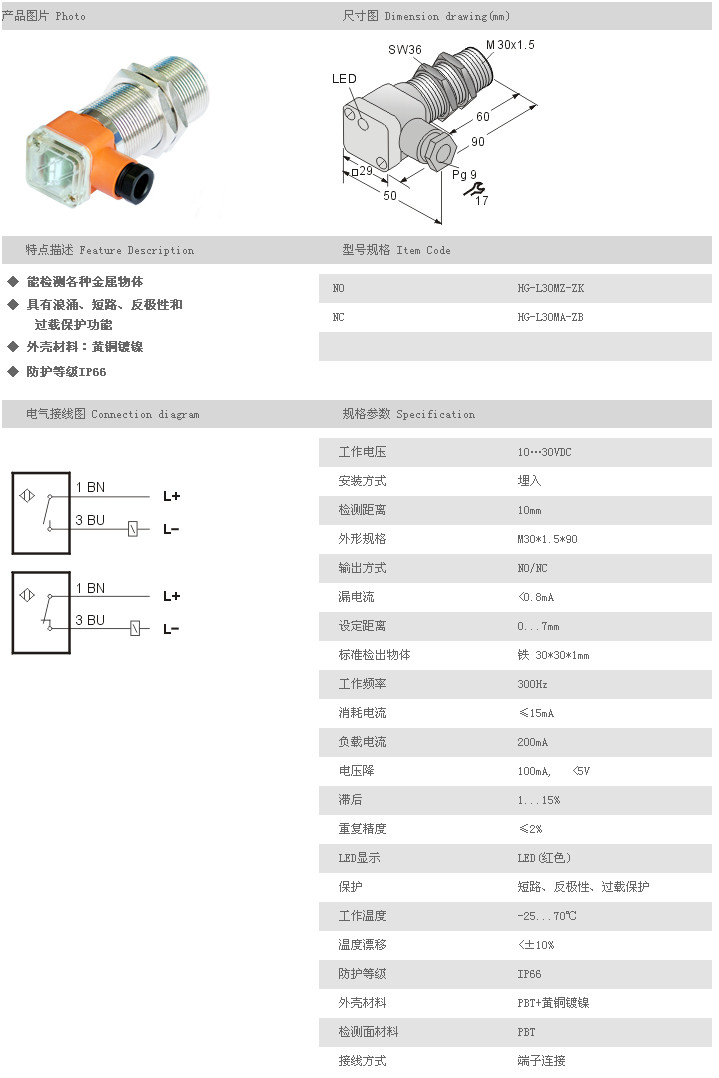圓柱型接近開關 HG-L30MZ-ZK,HG-L30MA-ZB,