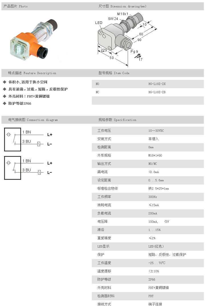 圓柱型接近開關(guān) HG-L18Z-ZK,HG-L18Z-ZB,