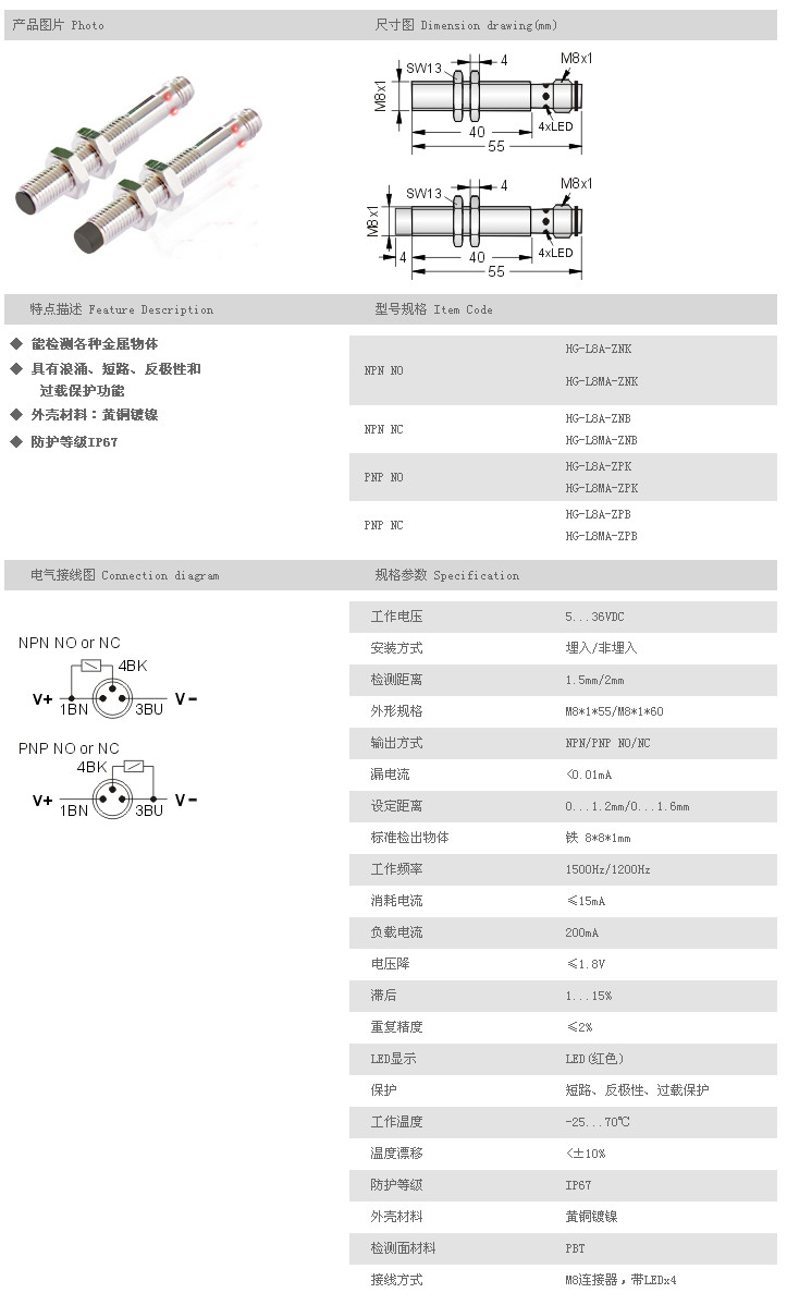 L8A圓柱型接近開關(guān) HG-L8A-ZNK,HG-L8MA-ZNK,HG-L8A-ZNB,HG-L8MA-ZNB,HG-L8A-ZPK,HG-L8MA-ZPK,HG-L8A-ZPB,HG-L8MA-Z