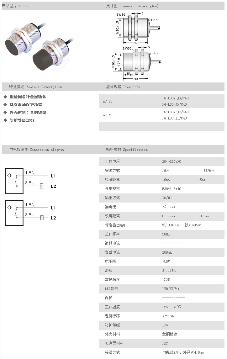 L30短圓柱型接近開(kāi)關(guān) HG-L30M-JK/C40,HG-L30-JK/C40,HG-L30M-JB/C40,HG-L30-JB/C40,