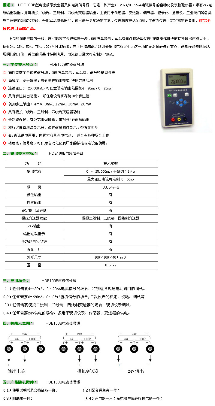HDE100B,電流信號發(fā)生器