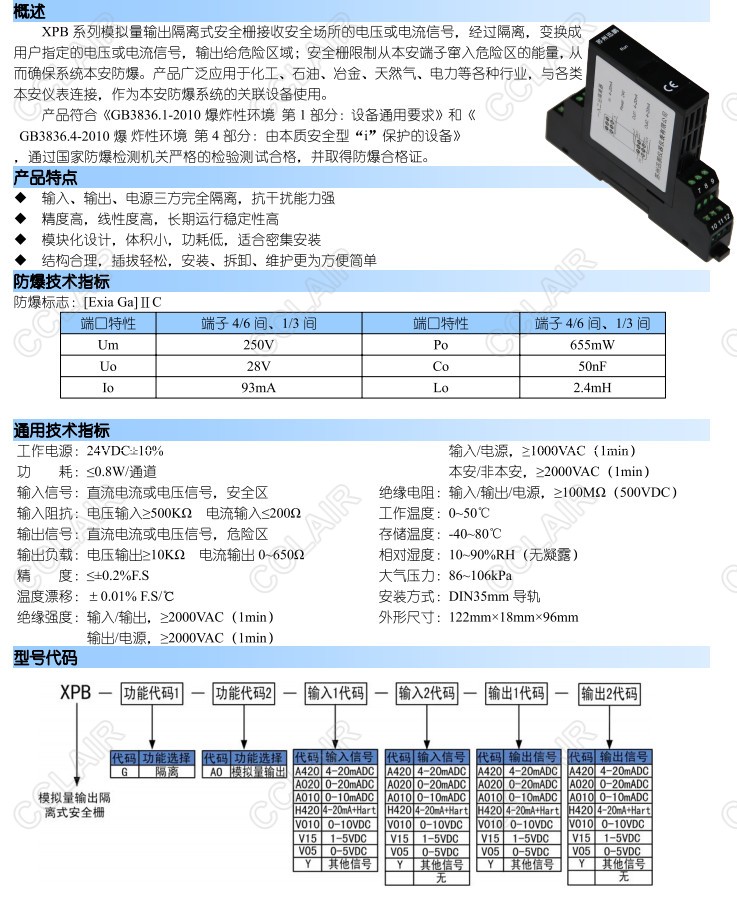 XPB-G-AO-A420-2A420,XPB-G-AO-V15-A420,XPB-G-AO-V010-2V010,XPB,模擬量輸出隔離式安全柵