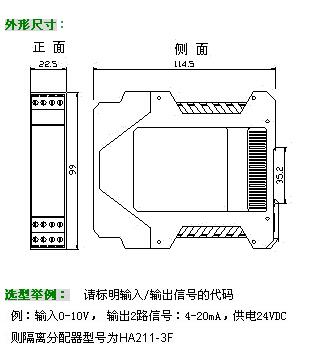 HA211一入二出信號(hào)隔離器,廣泛應(yīng)用于工業(yè)過(guò)程信號(hào)采集處理系統(tǒng)中,可配接溫度、壓力、液位、溫度、重量、流量等變送器的模擬信號(hào)如4-20mA,0-10V,0-5V等,隔離輸出信號(hào)可接入PLC、變頻器、數(shù)顯儀、采集器等設(shè)備,并對(duì)接接收設(shè)備起保護(hù)作用。