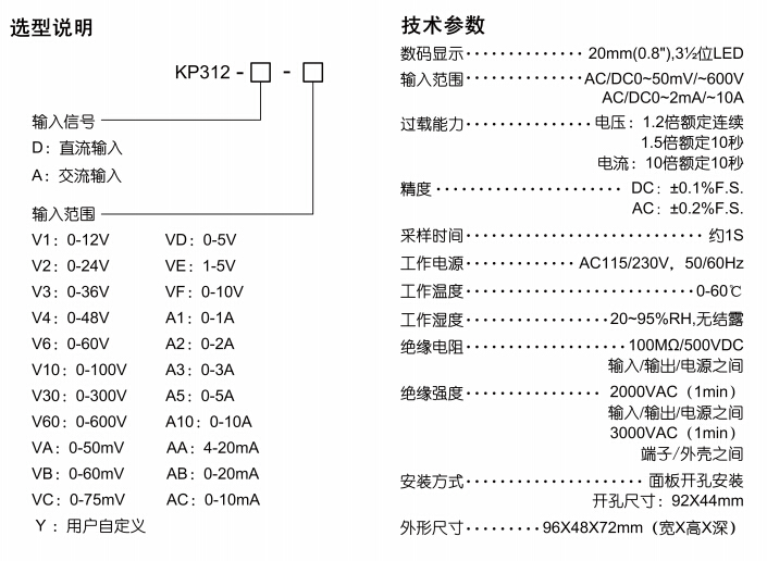 KP312-D,KP312-A,單功能電力儀表