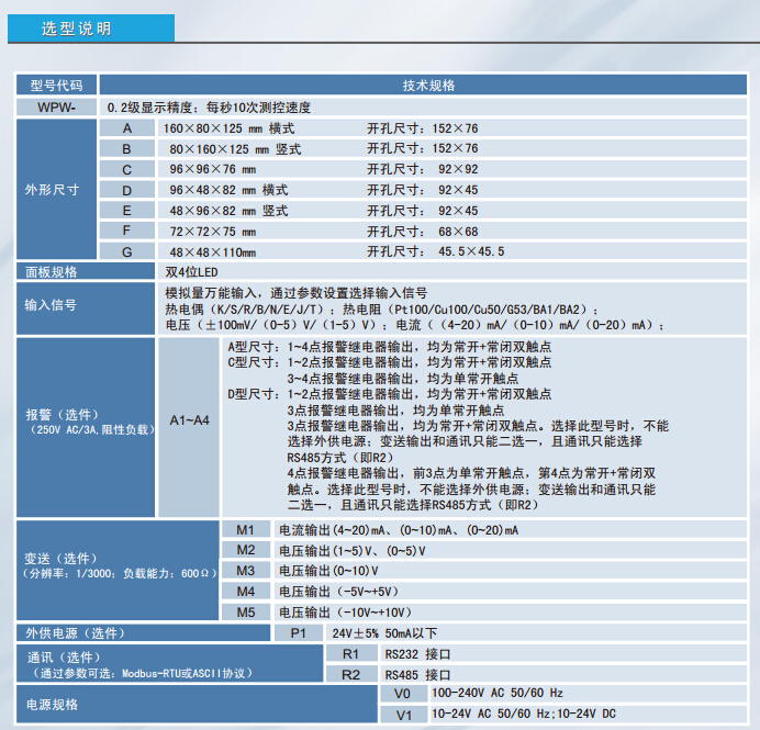 WPW-A,WPW-B,WPW-C,WPW-D,WPW-E,WPW-F,WPW-G,萬(wàn)能輸入型數(shù)顯表